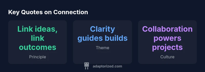 Applying connection quotes in a project starts with relevance. Place quotes on project boards near critical junctions, label panels with a short line to remind teams of the goal, and include a few lines in the project wiki or assembly guide. Practical usage includes quotes that emphasize reliability, clarity, and collaboration. When selecting quotes, align the tone with your audience—technical for hardware builds, motivational for team workshops, and educational for tutorials. Over time, consistent use helps developers, makers, and students internalize the value of robust connections.