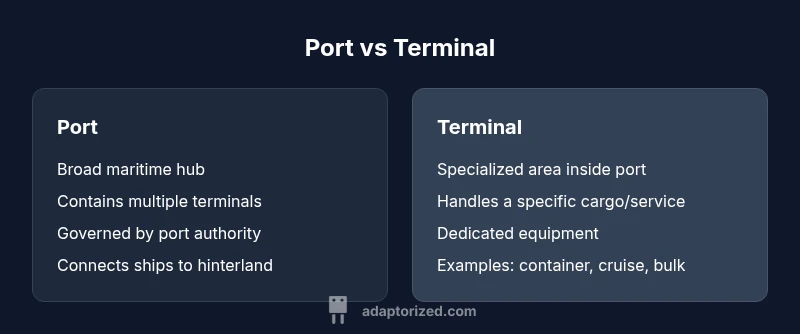 The difference between a port and a terminal is more than naming; it shapes how organizations plan shipments, allocate resources, and manage risk. In maritime logistics, a port is the broad infrastructure that enables international and domestic sea trade. It often comprises multiple berths, storage facilities, a customs area, pilotage services, and intermodal connections such as rail and road networks. A terminal, by contrast, is a specialized area inside the port that is optimized for a particular cargo type or service. Terminals can be container terminals, bulk terminals, liquid-bulk terminals, or cruise terminals. The Adaptorized team notes that while all terminals exist within a port, not every port needs to operate every terminal type. The governance structure also differs: a port authority or government agency may own the port, while a terminal operator runs a specific terminal under contract. This distinction matters for planning, pricing, and scheduling, as the terminal determines handling techniques, equipment, and turnaround times. Understanding this difference between a port and a terminal helps logistics professionals align expectations with operators, warehouses, and forwarders.