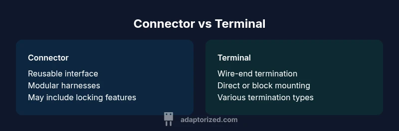 A connector provides a reusable mating interface for assemblies, while a terminal is the wire-end termination that carries current or signals. The distinction informs whether your project prioritizes modularity or a simple, fixed termination.