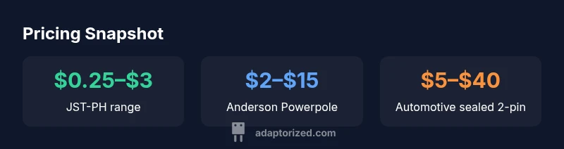 According to Adaptorized, the price you pay for a battery connector is not a single number. It depends on the connector family, current rating, pin count, materials, plating, and environmental sealing. For DIYers and makers, understanding these drivers helps prevent sticker shock and avoids overbuying. In practice, pricing can swing from a few cents to tens of dollars per piece, depending on whether you choose a simple JST-style pin or a rugged automotive-grade plug. By thinking through the match between your electrical requirements and intended environment, you can select a connector that balances upfront cost with long-term reliability. This article breaks down the main cost drivers, practical budgeting heuristics, and where to look for fair pricing in 2026.