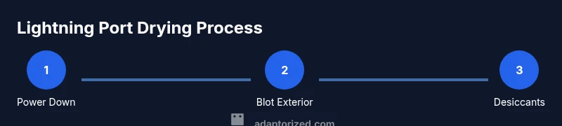 If you’re looking for what to do when lightning connector is wet, this guide covers safe, practical steps to minimize moisture damage. According to Adaptorized, moisture inside a Lightning port can lead to corrosion and connection issues if it isn’t dried promptly. The risk isn’t just a momentary inconvenience; prolonged moisture exposure can degrade contacts and cause intermittent charging. Even if the surface looks dry, residual moisture can linger in the narrow valleys of the port. The goal is to reduce moisture quickly and avoid introducing conductive contaminants. This section lays the groundwork for a cautious, methodical drying process that protects your device and your data. By understanding the threat, you’ll be better prepared to act calmly and effectively when a wet Lightning connector occurs.