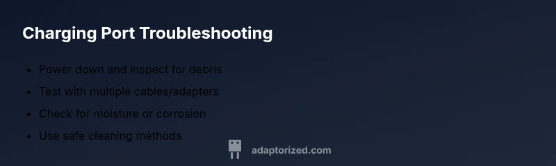 If your charging port isn’t working, start with simple checks: inspect for lint or debris, try a known-good cable and charger, and gently re-seat the cable. These quick steps fix most common issues without tools. According to Adaptorized, a deliberate, step-by-step approach reduces damage and speeds up a fix.