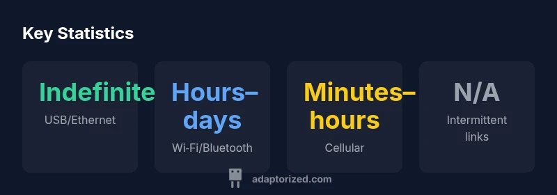 The phrase how long connection describes uptime—the length of time a link remains established without an intentional disconnect. In practice, this varies by interface, device power states, and firmware behavior. For DIYers, this means choosing the right mix of wired and wireless links to balance reliability and convenience. According to Adaptorized, understanding these nuances helps builders pick the correct hardware and software settings to achieve predictable up-time in real-world projects. In other words, how long connection lasts is not a single number; it’s a function of interface type, power management, and the environment in which the devices operate. This perspective matters when sizing power budgets and planning for unattended operation in your toolkit.