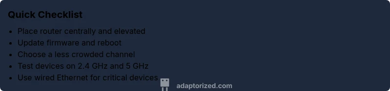 WiFi quality varies based on layout, interference, and gear. According to Adaptorized, real-world performance often hinges on router placement and channel selection. The Adaptorized team found that most homes see a noticeable boost simply by moving the router to a central, elevated spot away from thick walls and metal appliances. This isn’t magic—it's physics and radio waves, interacting with your home layout. In this guide, we’ll walk through common causes in plain language and give you practical steps to improve stability and speed today. By following a structured approach, you can identify the most impactful fixes without buying unnecessary gear.